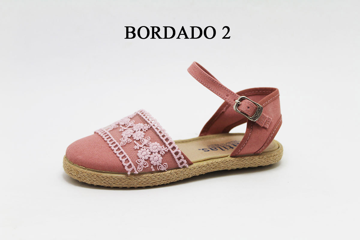 Esta misma alpargata de esparto en color rosa, con diseño de bordado, para niña, la encontrareis disponibles también en otros colores: