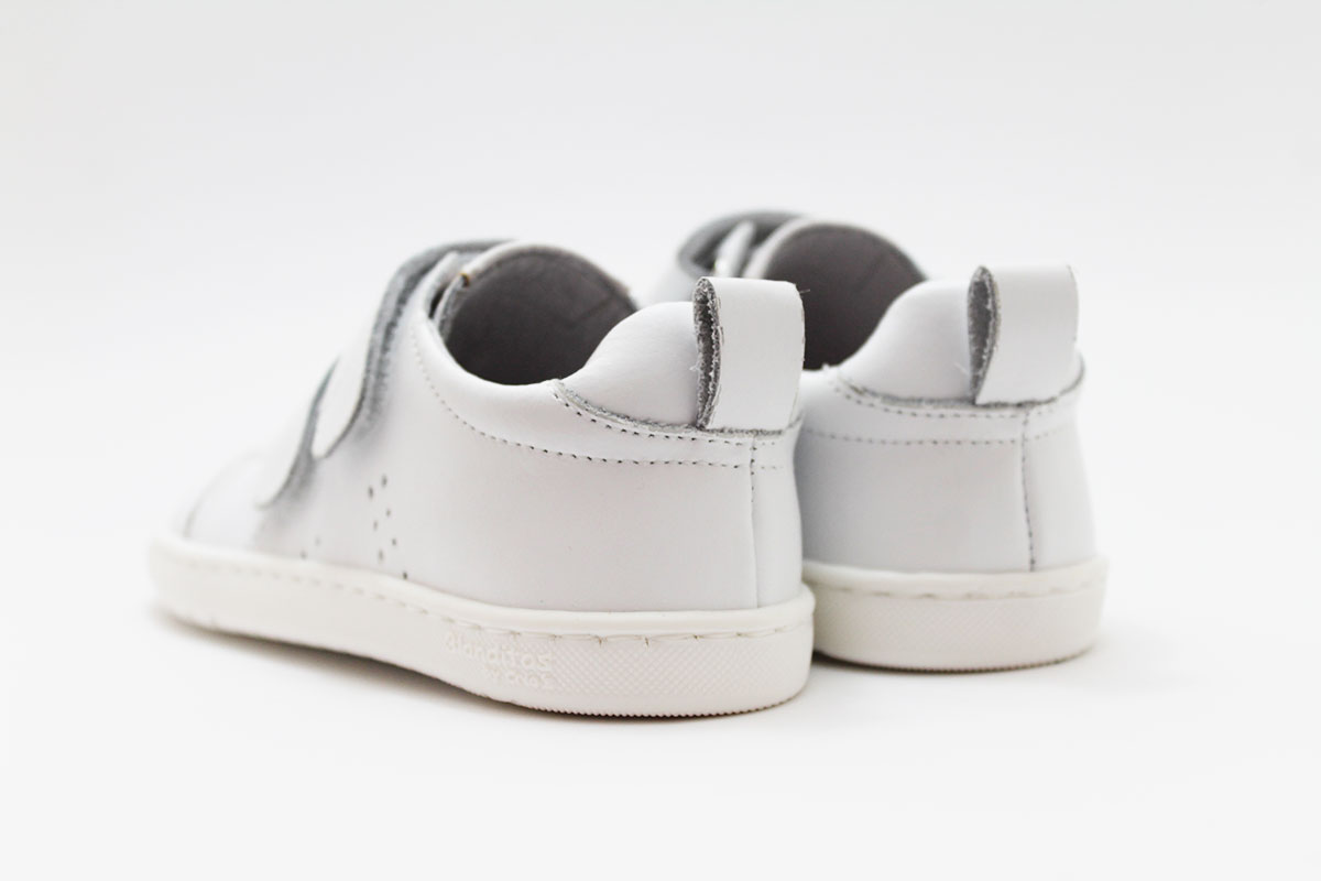 Deportivos blanco con la suela muy flexible, de la marca Blanditos. Calzado respetuoso, pensando en el cuidado y correcto desarrollo de sus pies.