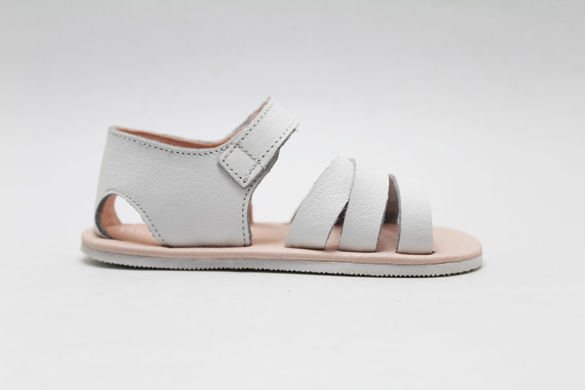 Sandalia blancas con detalle de flor, de la marca Blanditos by Crios, modelo BRISA. Calzado respetuoso, pensando en el cuidado y correcto desarrollo de sus pies.