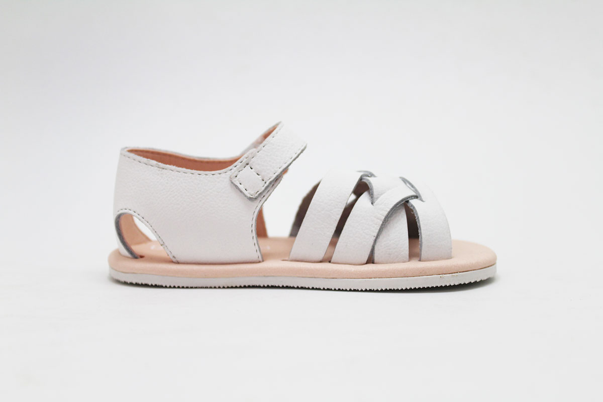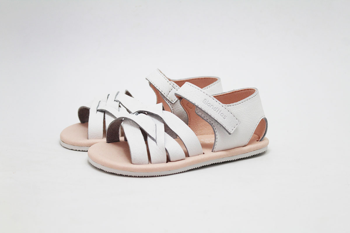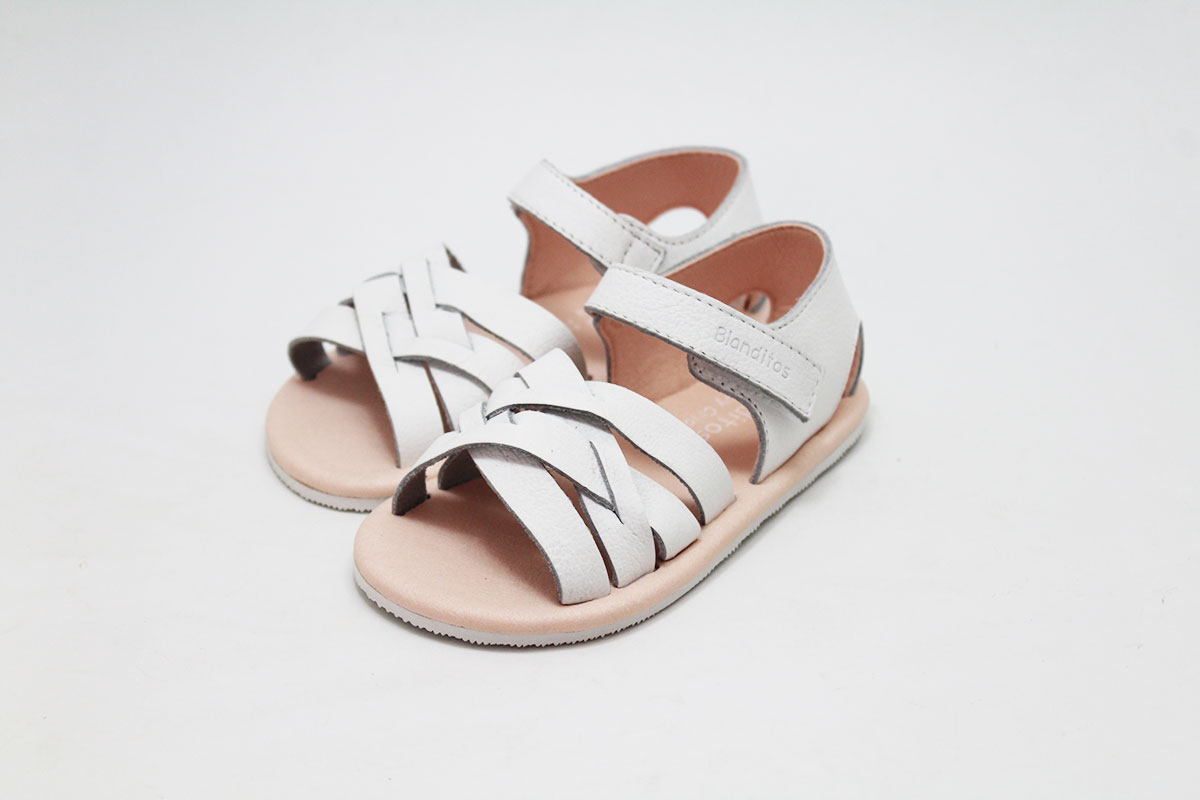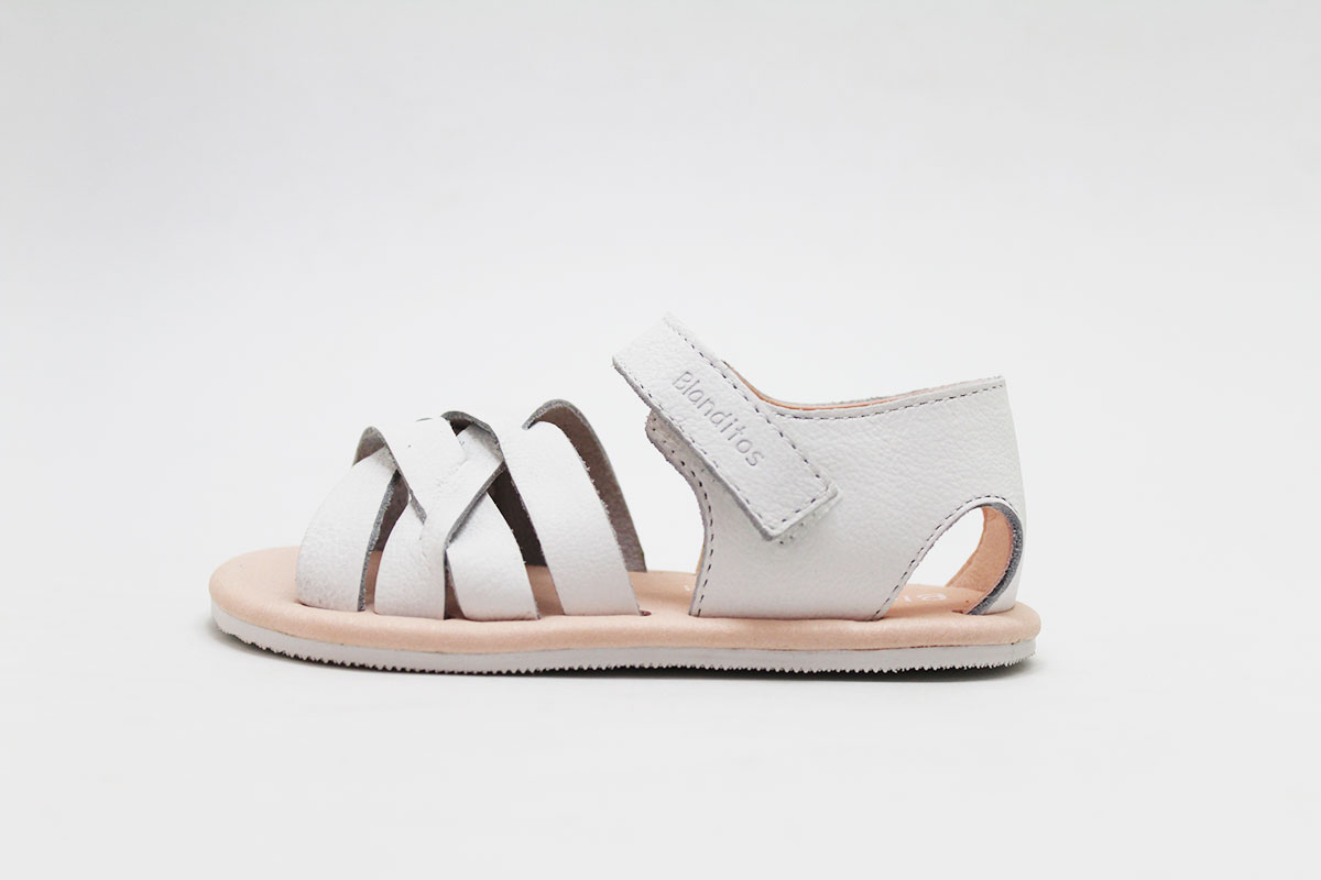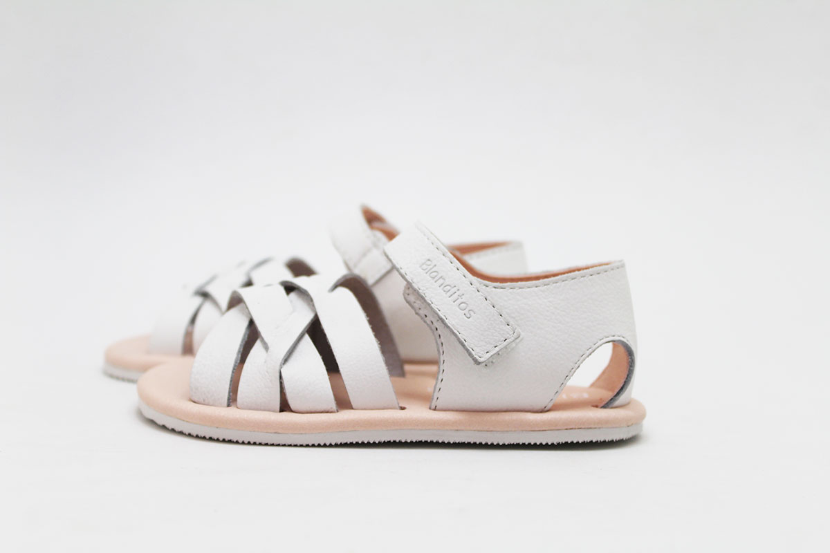 Sandalias flexibles en color blanco, de la marca Blanditos. Calzado respetuoso, pensando en el cuidado y correcto desarrollo de sus pies.