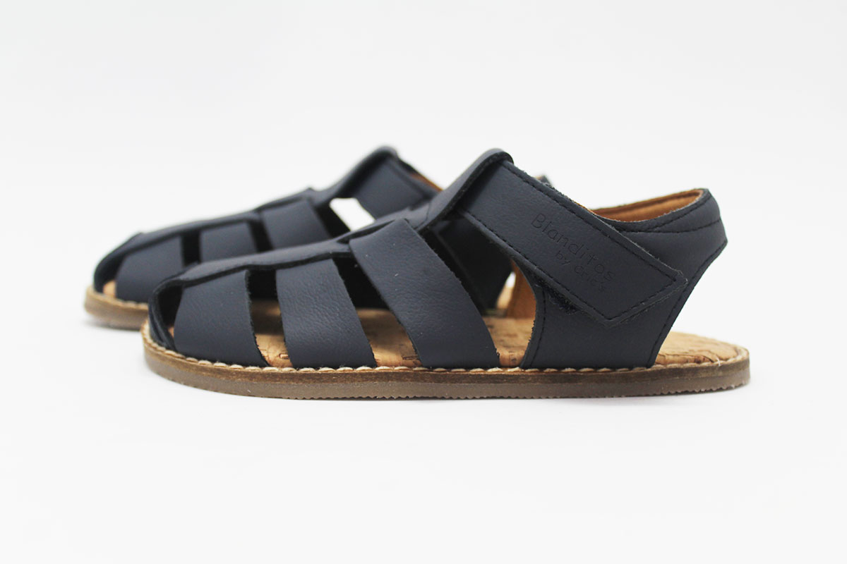 Sandalias de la marca Blanditos by Crios, en color azul marino. Calzado respetuoso, pensando en el cuidado y correcto desarrollo de sus pies.